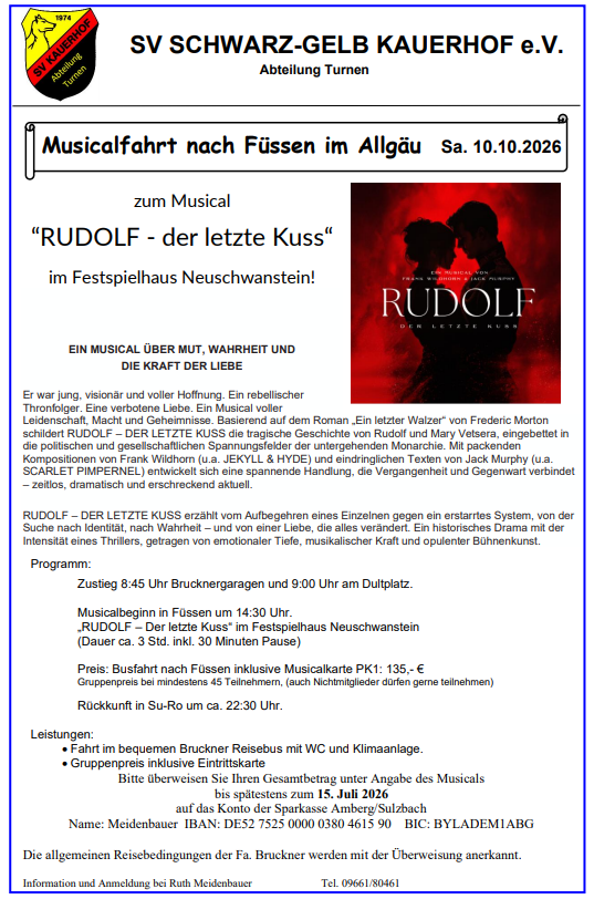 Musicalfahrt nach Füssen im Allgäu Sa. 10.10.2026